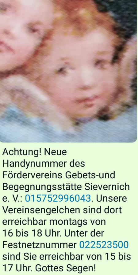 Die Gebetsstätte/Stiftung ist Donnerstags von 10 Uhr bis 11 Uhr unter 02252 / 3500 erreichbar.