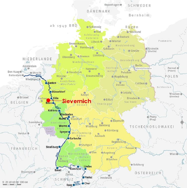 Zülpich fahren, B 477 führt an Sievernich vorbei. Entfernung ca. 20 km,