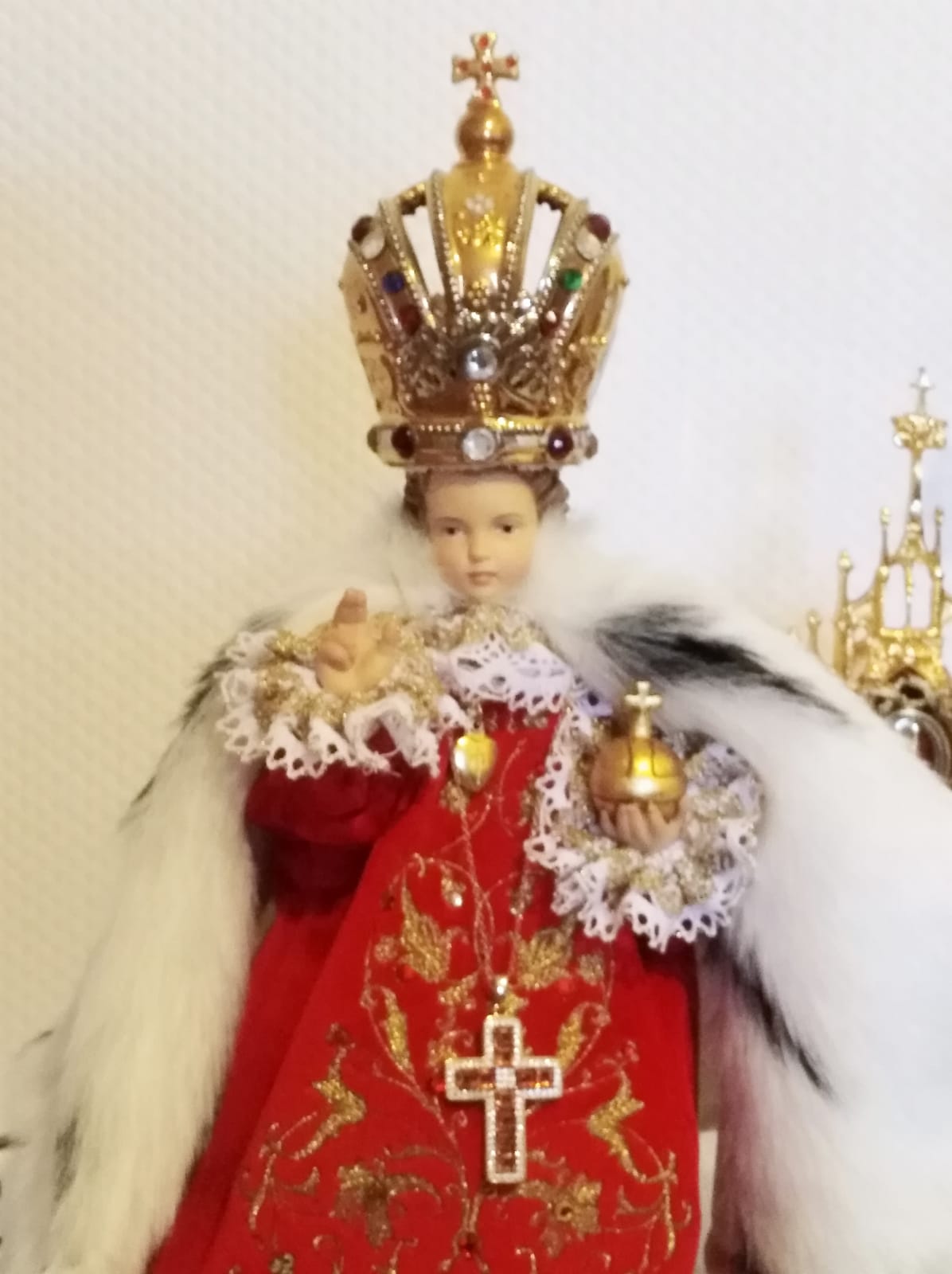 und wünscht die Verehrung Seiner Füße an der Statue des Prager Jesuskindes. Der