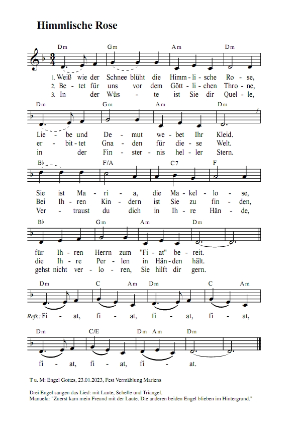 Mariens Drei Engel sangen das Lied: mit Laute, Schelle und Triangel. Manuela: "Zuerst kam mein Freund mit der Laute. Die anderen beiden Engel blieben im Hintergrund." |