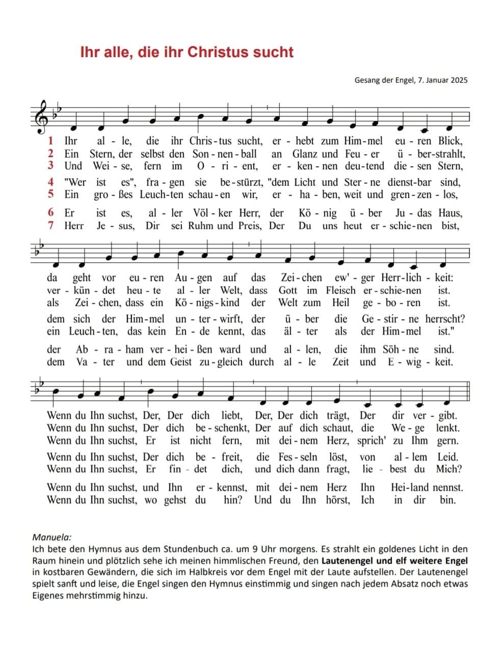 Gesang der Engel, 7. Januar 2025